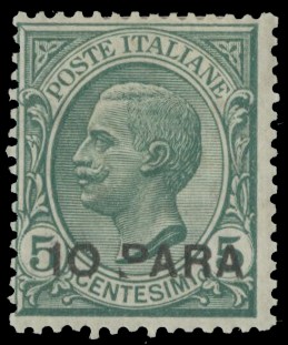 1908 - Levante - Costantinopoli: 10 PARA su 5c verde (Sassone 1 - € 800)
