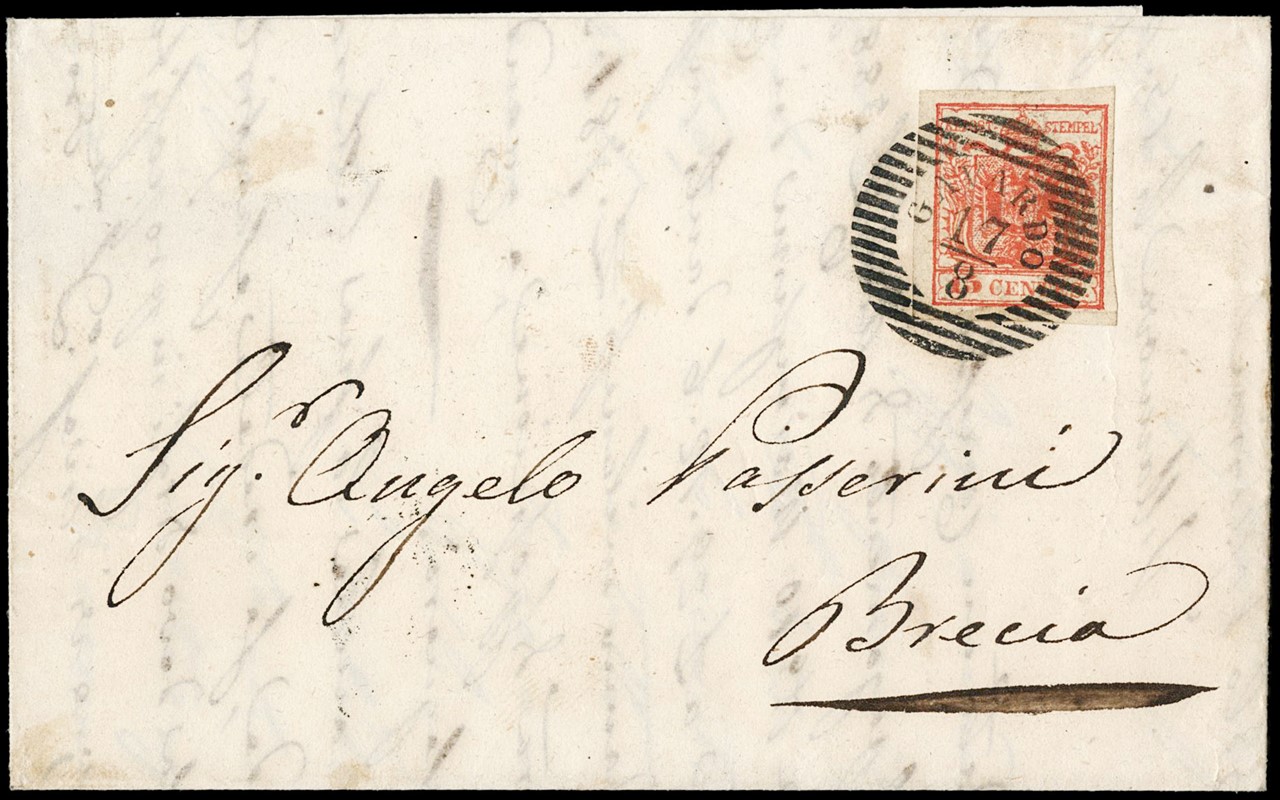 1850 - Lombardo Veneto Annulli: 15c rosso carminio vivo da "GAVARDO 17/8" a Brescia (Sassone 6k+pt.4 - € 995)