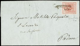 LOMBARDO VENETO ANNULLI 1850 - 03f+pt.9: 15c rosso vermiglio chiaro da "CAVARZERE 26 GEN." a Venezia