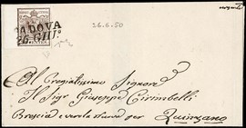 1850 - Lombardo Veneto: 30c bruno BdF 7mm su lettera da "PADOVA 26 GIU.°" Primo mese d'uso del 30c (Sassone 7b [..]