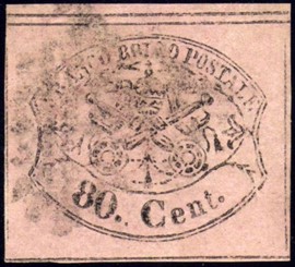PONTIFICIO 1867 - 20: 80c rosa lillaceo