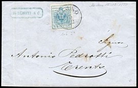 1852 - Lombardo Veneto: 45c azzurro ardesia, II tipo, con pieghe di carta, da 'MILANO 15/12' per [..]