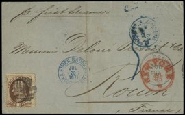 1870 - Stati Uniti d'America: 10 cents bruno su lettera spedita da "NEW ORLEANS 20 JUL 1871" per Rouen, Francia. [..]