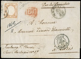 1860 - Sardegna: 40c carminio su lettera del 22 agosto 1862 da Torino a Nizza Marittima, CF Raybaudi (Sassone [..]
