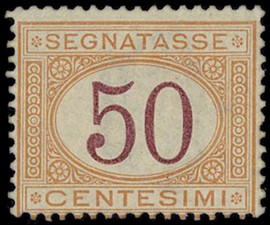 ITALIA REGNO 1870 - T9: Segnatasse, 50c ocra e carminio
