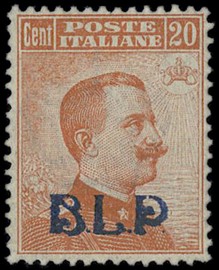 1921 - Regno d'Italia: 20c arancio, sopratsampa BLP litografica I tipo. Ben centrato, CF Sorani (Sassone BLP2 [..]
