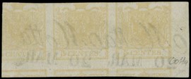 1863 - Regno d'Italia: 15c chiaro, tiratura di Londra, non dentellato, annullato con un timbro sardo italiano [..]