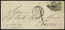1867 - Austria: 25Kr maroon, rough print, from "WIEN 14/8/7" to Milano. Superb (Unificato 37b - € 500)