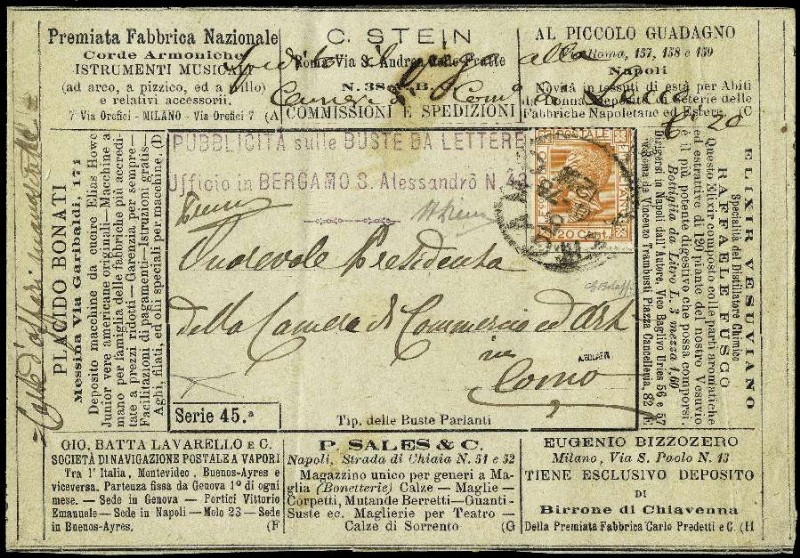 Sales of stamps from the Italian Kingdom of Italy were impressive, with around 80% of goods sold. The Kingdom was the section of records with: “Top Lot” for the advertising envelope, series 45 of 1877 “20 cent. Bigola” from 1878 (lot 698). This extremely precious envelope, which has not yet been valued by Sassone, went for some 57,500 euros. Meanwhile, successful result with the lot 517, which started at just 400 euros and rose to the remarkable figure of 4500 euros.